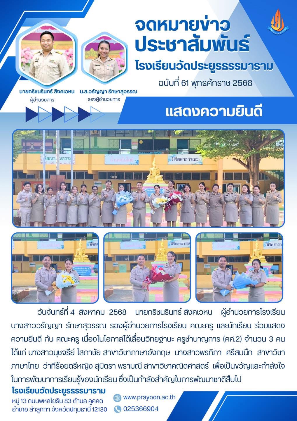 เนื้อเพลงโรงเรียนวัดประยูรธรรมาราม